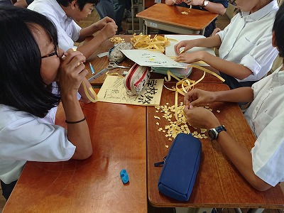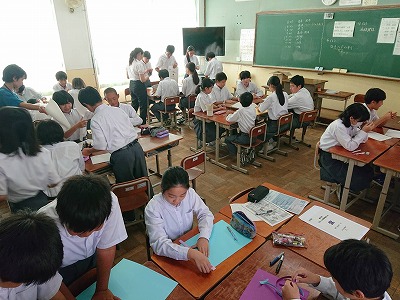 1年生はテスト終了後,学校祭に向け,展示準備をしました。