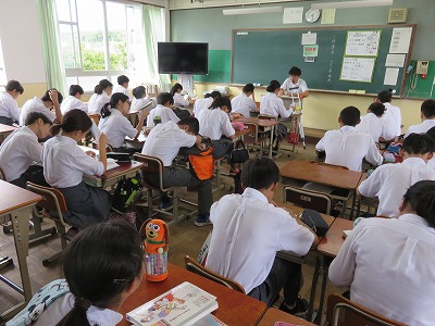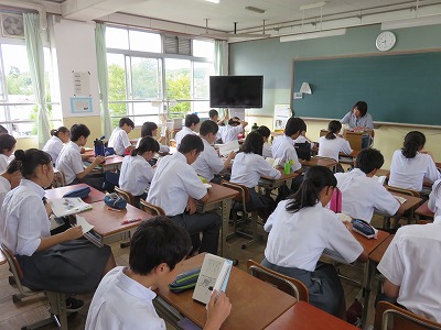2年5組6組7組朝読書のようすです。