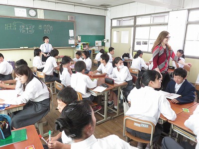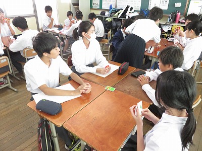 1年3組の英語は,グループごとにカードを使い,形容詞の学習を行いました。