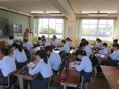2年2組,3組,4組の朝の読書,朝学活のようす