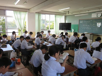 2年5組,6組,7組の朝読書,朝学活のようす