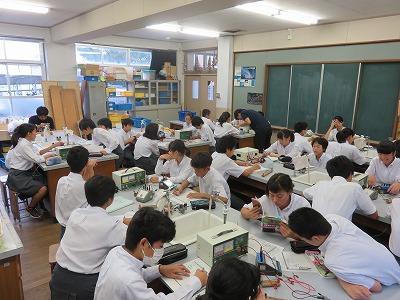 2年6組の理科は,理科室で「電流と電圧の関係性を見出す」ことを目標とし,実験を通して明らかにしました。