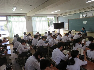 1年5組,6組,7組朝読書のようす