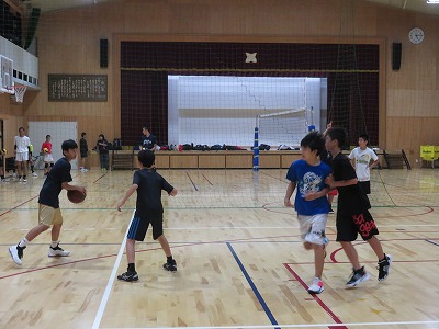 一方,体育館グランド側では,バスケットボール部が練習に励んでいました。