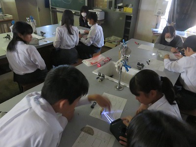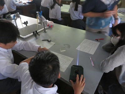 1年5組の理科は,光の進み方(反射・屈折)について,実験を通して理解を深めました。