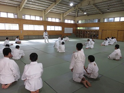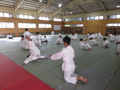 1年5組の保健体育は,後ろ受け身を練習した後,「後ろ受け身のポイントをおさえられているか」を確認する実技テストを行いました。