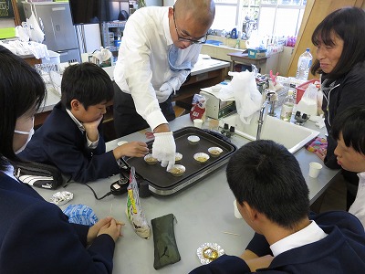 1組の理科は,砂糖を溶かし,飴に加工しました。