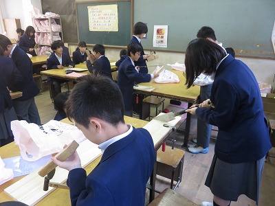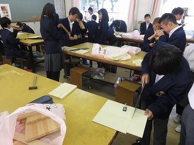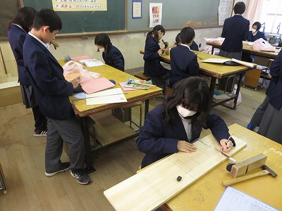 1年4組の技術家庭科(技術分野)は,工具の特性を理解した上で,切断作業とカンナの調整を行いました。