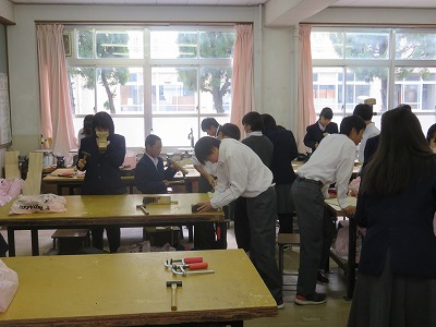 1年6組の技術家庭科(技術分野)は,安全に注意してカンナを使った作業を行いました。カンナの刃の調整に,多くの生徒が苦労していました。