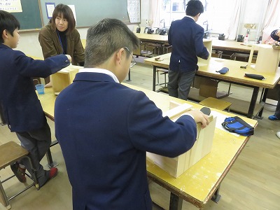 1組技術家庭科(技術分野)は,木材加工のつづきをしました。