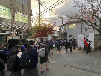 部活終了後下校する生徒のみなさんは,自宅近くまで,まとまって帰るようにしてくださいね。