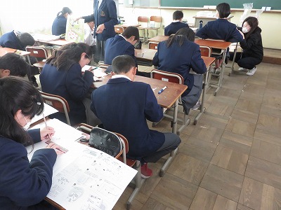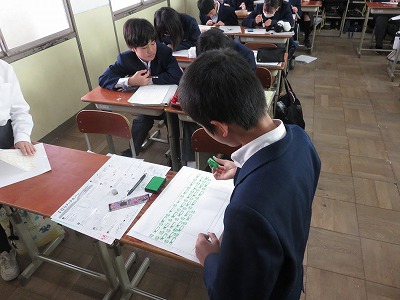 1年4組の美術は,消しゴムハンコの作成を行いました。道具の使用に注意しながら,丁寧に作業を進めました。この後,完成したハンコを使って,ブックカバーを作成します。