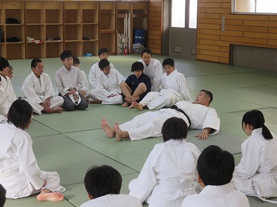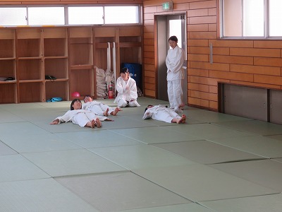 2年生になってはじめての柔道のため,しっかり準備対応をした上で,1年生でも行った頭を守る受け身の復習をしました。