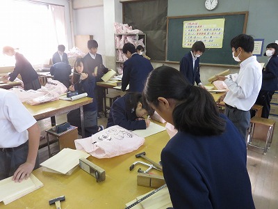 1年6組技術・家庭科(技術分野)は,引き続き木材加工を行いました。