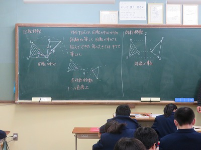 1年2組の数学は,回転移動と対称移動について,理解を深めました。