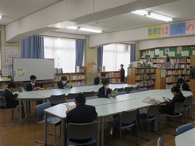 昼休みグランドと図書室のようす