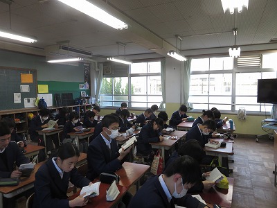 3年朝読書のようす