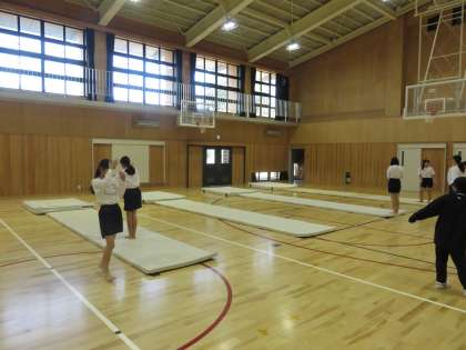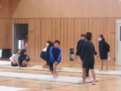 1年6組の保健体育は器械運動を行っています。