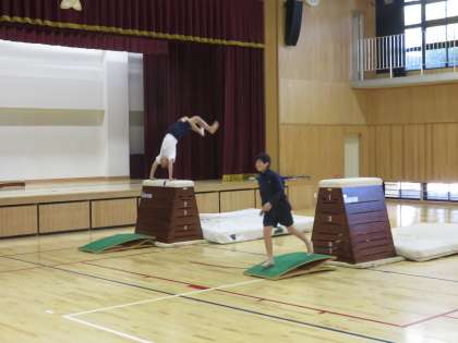 マット運動と跳び箱運動に分かれ,練習をしました。