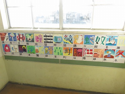 また,国語の授業で作成した書写等の作品を各学年の廊下に展示しております。