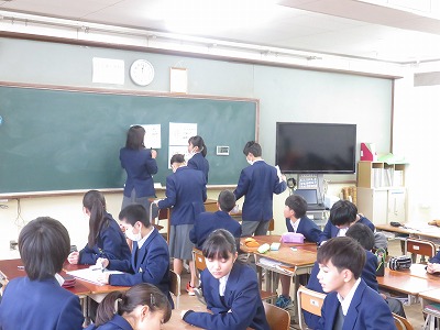 グループごとに学級の振り返りを行った上で,クラスのようすを漢字で表しました。