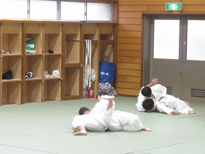 袈裟固の状態で,一方は押さえ込み,もう一方は逃げる練習をしました。
