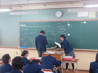 3年2組の数学は,「三平方の定理を用いて直角三角形の辺の長さを求めること」を目標に,学びを深めました。