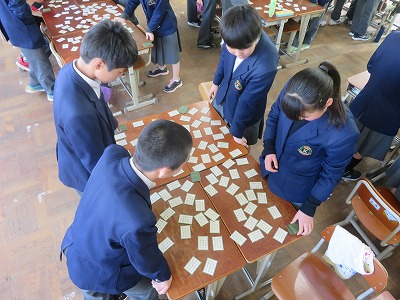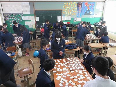 1,2年生は,6限学級ごとに百人一首大会を行いました。