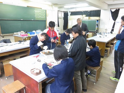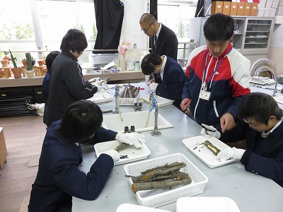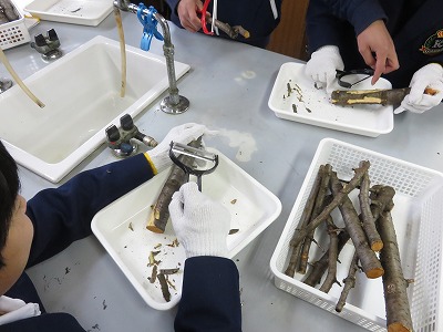 1組の理科は,サクラの樹皮から桜色を取り出すための準備をしました。大寒の頃のサクラが最も綺麗な桜色を取り出すことができるとのこと。上手く桜色を取り出すことができるでしょうか。