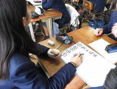 写真は,各地域に残る方言の意味をグループで推測しているところです。