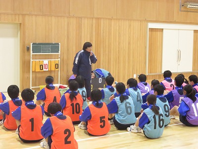 「動きの中でパスをもらい,パスやシュートにつなげる」ことを目標に練習を行い,授業の後半はミニゲームを行いました。