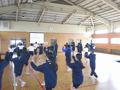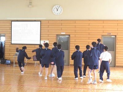1年4組の保健体育は,ダンスに挑戦しています。仲間と協力し,自分たちのダンスを考え,リズムに乗り,全身を使って表現することを目指し,学習を進めています。