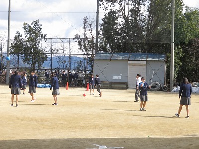 北風が冷たいグランドですが,多くの生徒が元気に駆け回っていました。