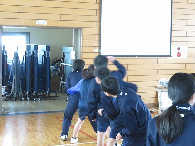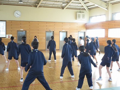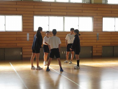 1年6組の保健体育は,ダンスに取り組みました。各グループごとにダンス終盤どのようなパフォーマンスを入れるかを議論した後,実際に練習しました。