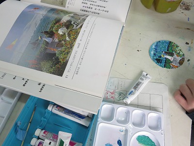 3年7組の美術は,「名画を切り取ろう」の課題のもと,今回は「点の密度を意識し制作すること」を特に意識し,創作活動に励みました。