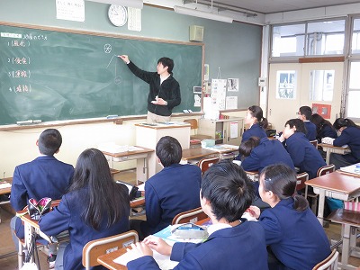 1年生の理科は,「地層のでき方」について,「風化,浸食,運搬,堆積」の視点から考えました。