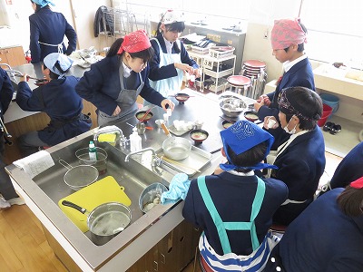 1年6組の技術・家庭科(技術分野)は,調理実習を行いました。