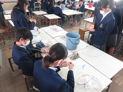 2年7組の美術は,藤かごづくりに取り組みました。少しずつ完成する生徒も出てきました。