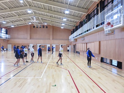 後半は,ボール操作に加え,ディフェンスとオフェンスの立ち位置も考えて,ゲームに取り組みました。