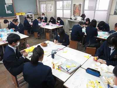 2年2組の美術は,3年生を送る会で使う飾りつけを,仲間と協力しあいながら,作成しました。