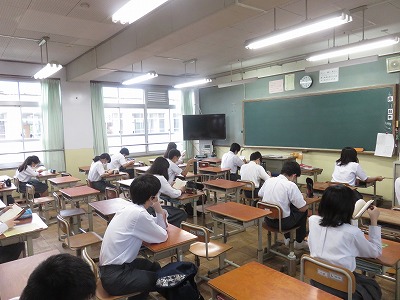 2年生朝読書のようす。