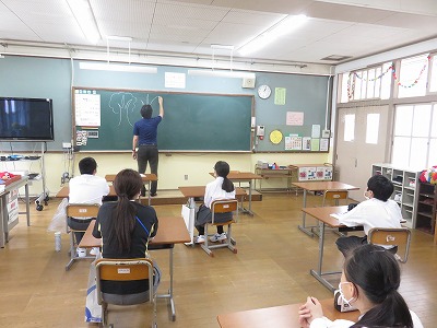 1組の社会は,人類の進化について,他の動物と比較しながらみんなで考えました。