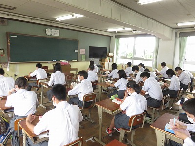 1組と3年2,3組の朝読書のようすです。