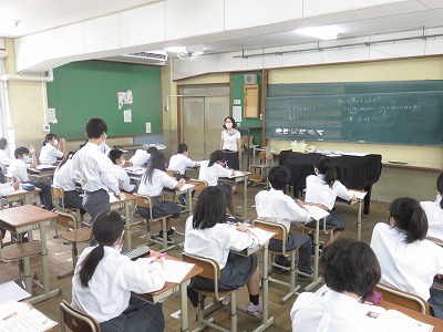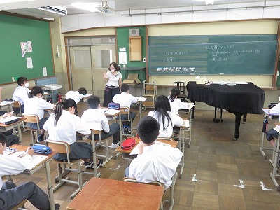1年5組の音楽は,中学校の校歌の練習を行った後,鑑賞を行いました。