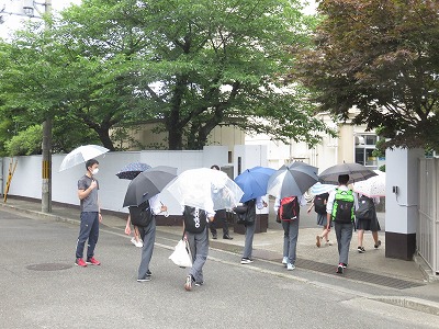雨の日の登(下)校は特に交通に注意するようにお願いします。