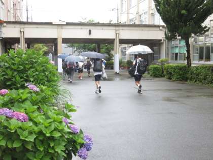 明日の登校時,大雨になる可能性があります。十分に注意して登校してください。
