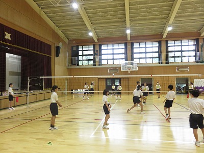 1年3組の保健体育は,これまで練習したパスの技術を活用し,バレーボールをつなぐことを目的としたゲームを行いました。