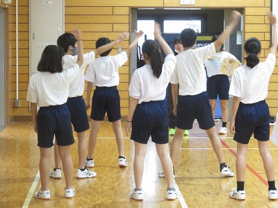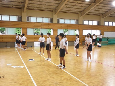2年7組の保健体育は,班のダンスを考えるとともに,ダンスの曲を覚えることを目標に,班活動に取り組みました。