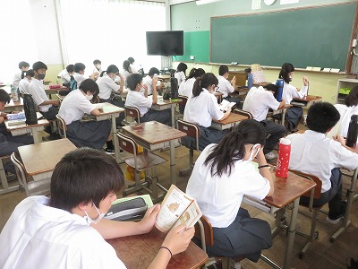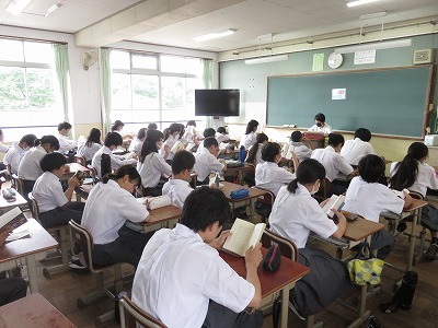 1年4〜6組の朝読書のようすです。