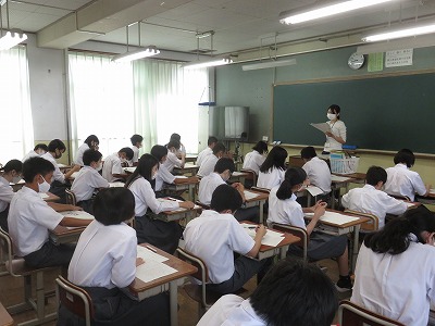 16日(木)に実施した1学期のテストの返却が,多くの学級で行われています。間違いを訂正するとともに,自分自身の学びのどこに課題があったのかを振り返り,今後にいかしてください。なお,写真は2年3組のテスト振り返りのようすです。
